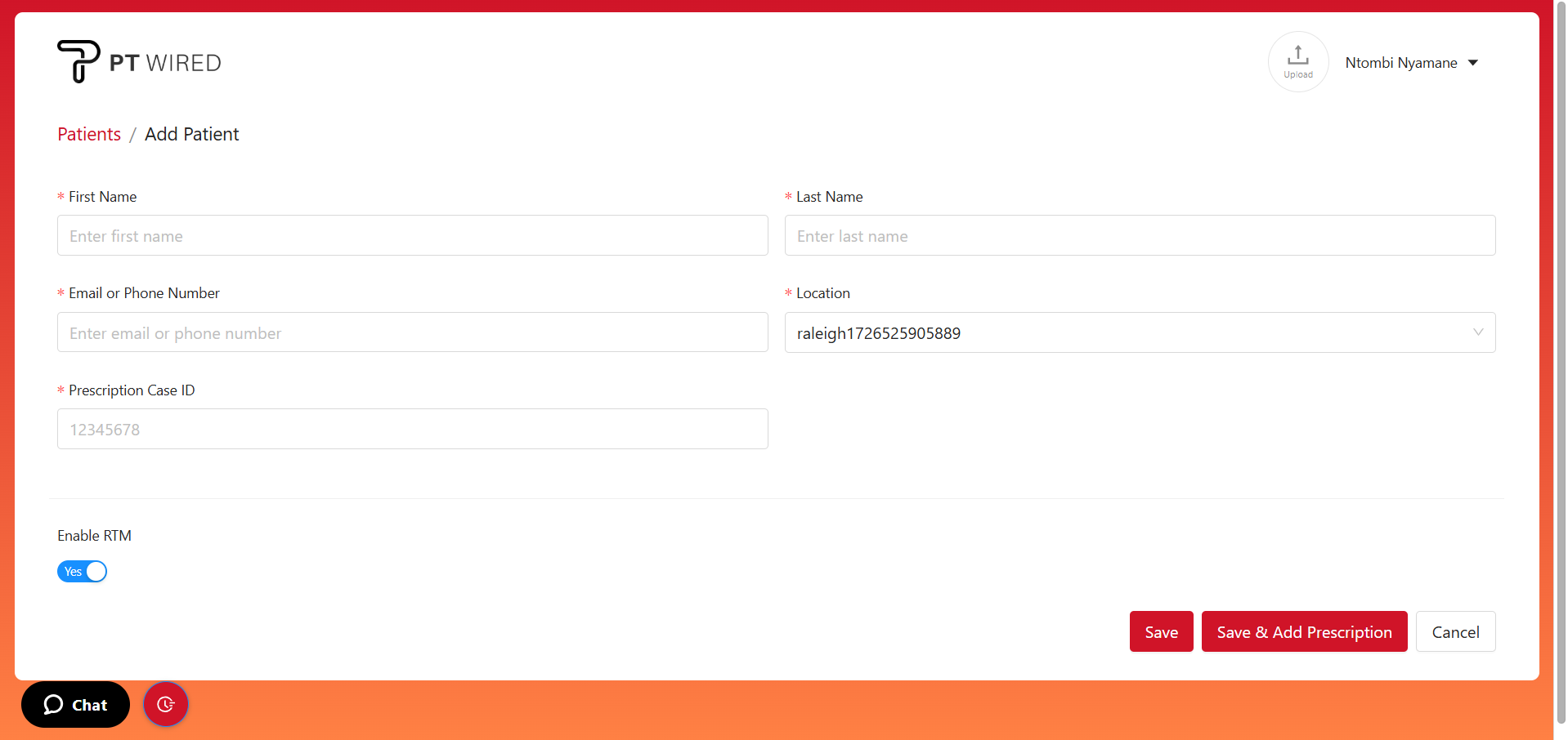 5.) Click on 'Save' or 'Save & Add Prescription' to save the patient's details or proceed to assigning the patient's home exercise program.