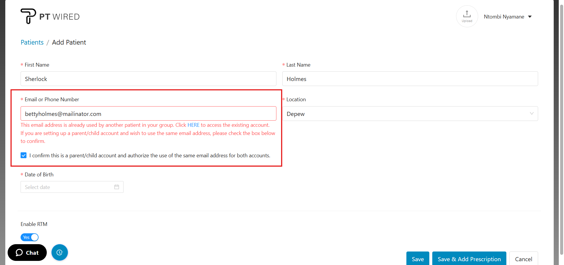 Providers can add patients using the same email address or phone number. This is particularly useful for family members who share contact details. To ensure easy identification, providers should provide the patient’s date of birth when adding them to the system.