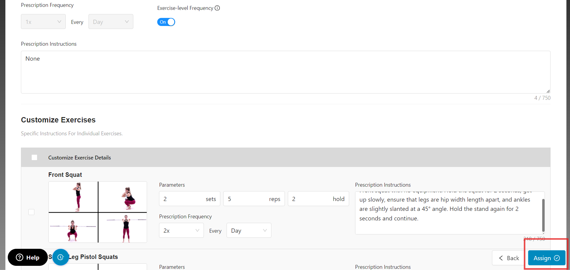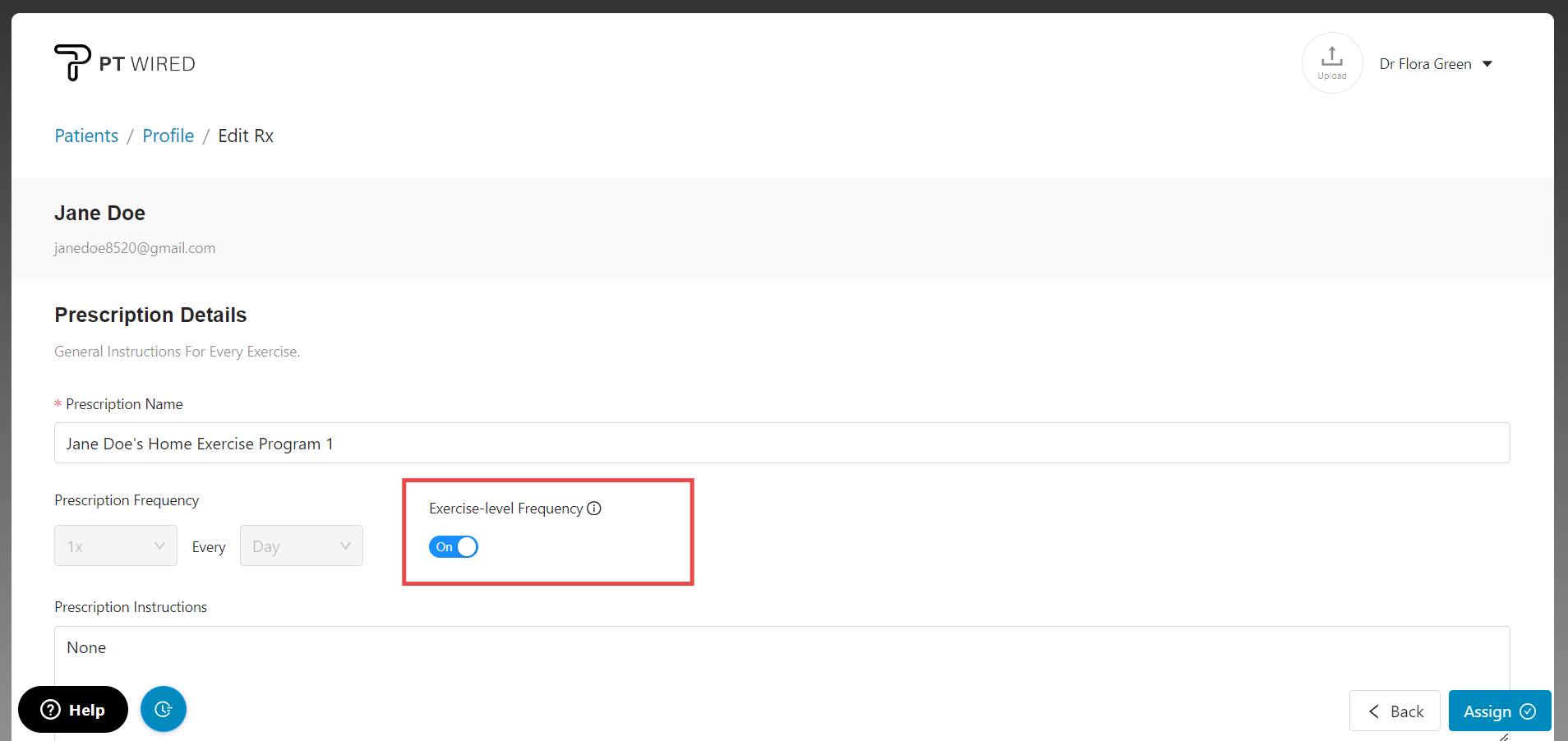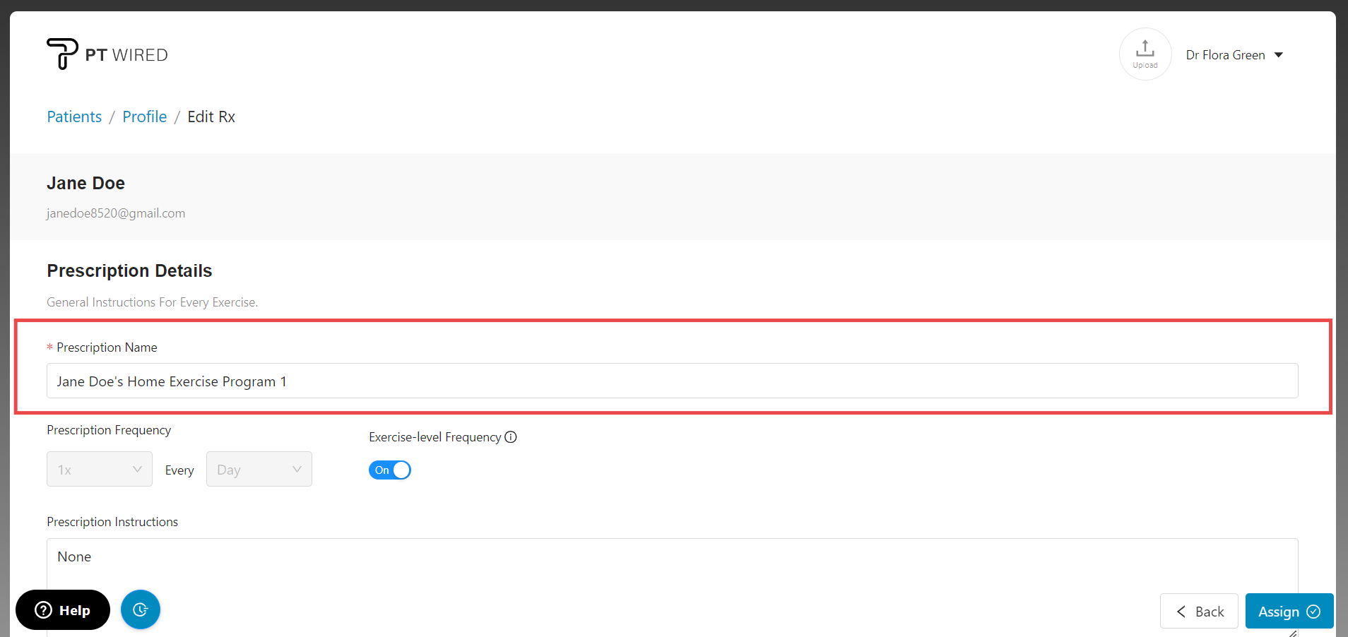 10.) Once you are satisfied with the changes made, click the "Assign" button on the bottom right of the page. A "Prescription Updated!" prompt will appear on the top left of the page. The patient will be notified via email regarding the updates to their prescription.