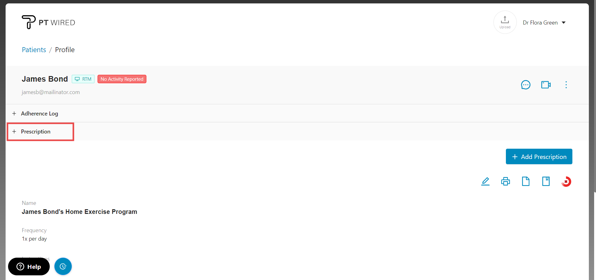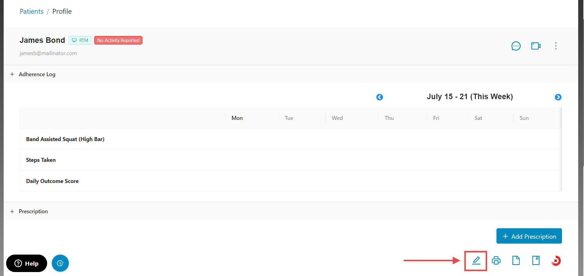 3.) Once you are on the Patient's profile, scroll down to the "Prescription" section and click the "Edit Prescription" button.