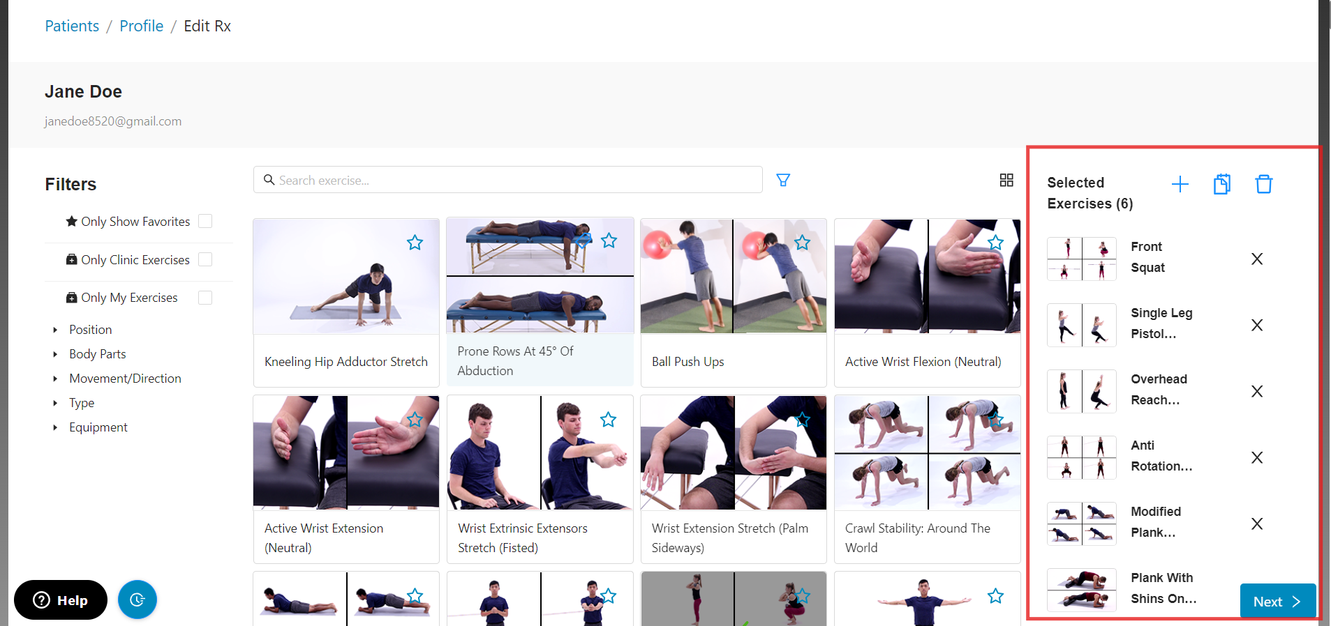 4.) The process of editing an exercise program is exactly the same as Creating a Prescription from scratch. The only difference here is that there are already pre-existing exercise programs in the "Selected Exercises" bucket, to the right of the page.