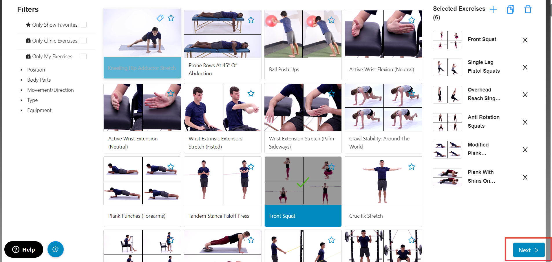 5.) You're now able to make any changes you desire, like adding or removing exercises from the list, and replacing or rearranging the exercises in the Selected Exercises bucket.