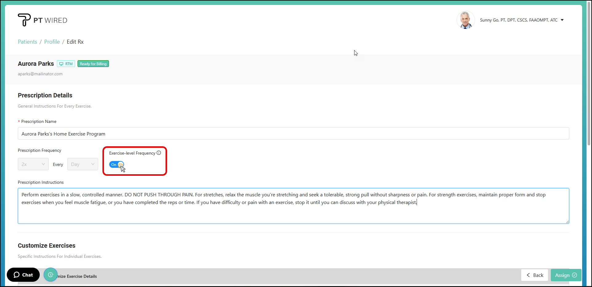 In this tutorial, we'll go over how to edit and customize the frequency for each individual exercise in the patient's prescription.