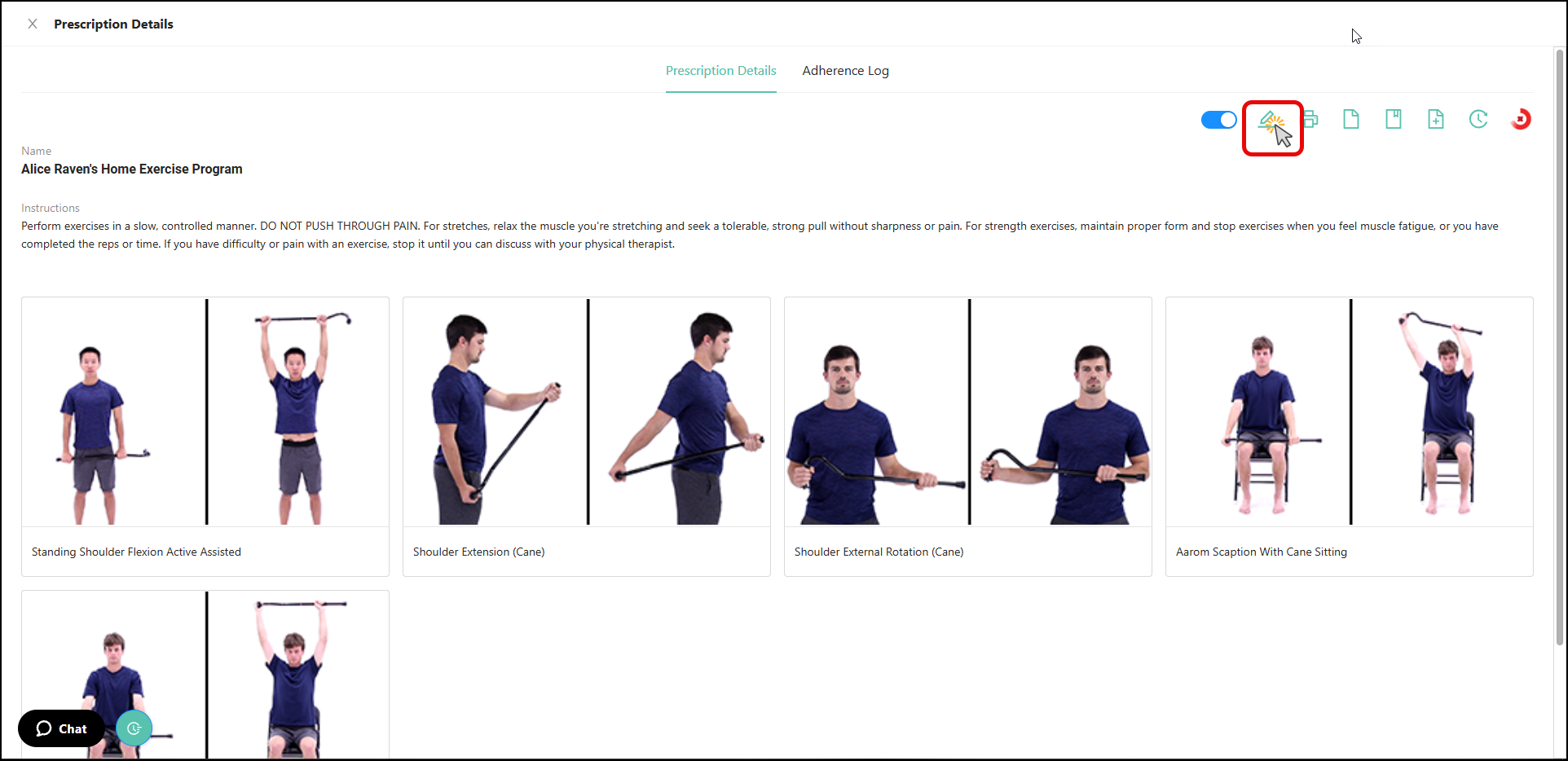 3.) To edit the Exercise Level Frequency, click the "Edit Prescription" button, symbolized by a blue pencil icon.