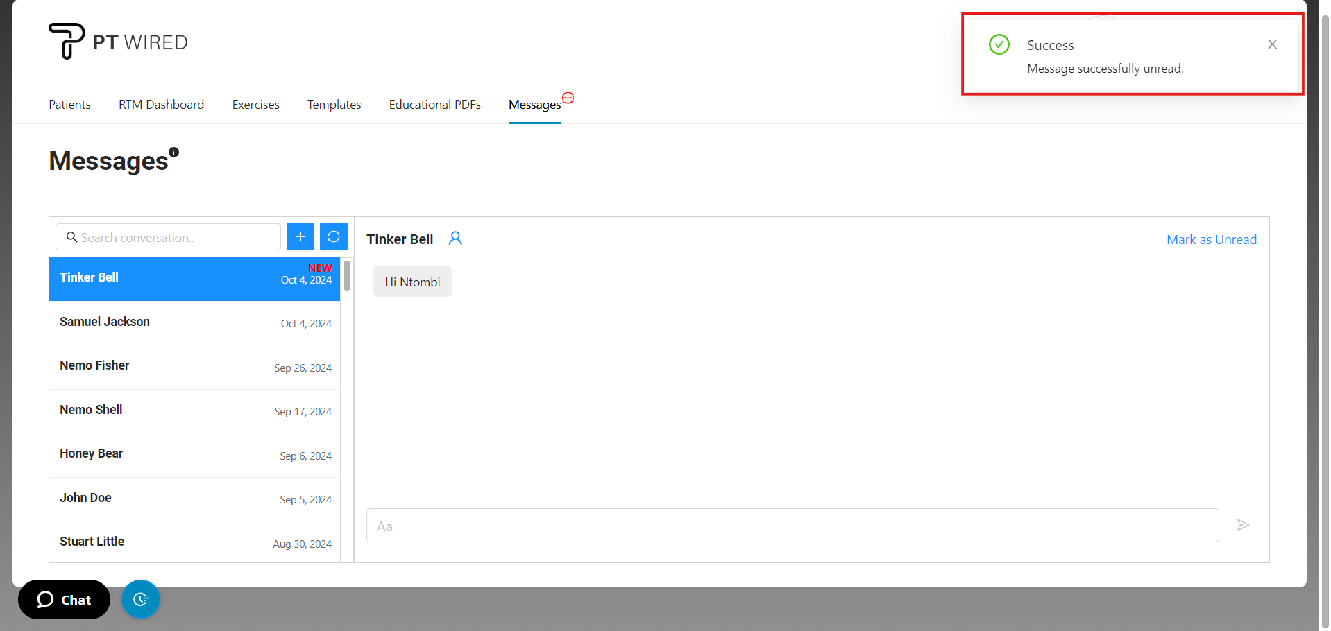 Providers can easily mark messages as unread, helping them stay organized and keep track of important conversations. This feature is especially useful for following up on patient communications, ensuring no details are missed. By marking a message as unread, providers can quickly flag it for later attention, making it easier to manage ongoing tasks and maintain effective communication.