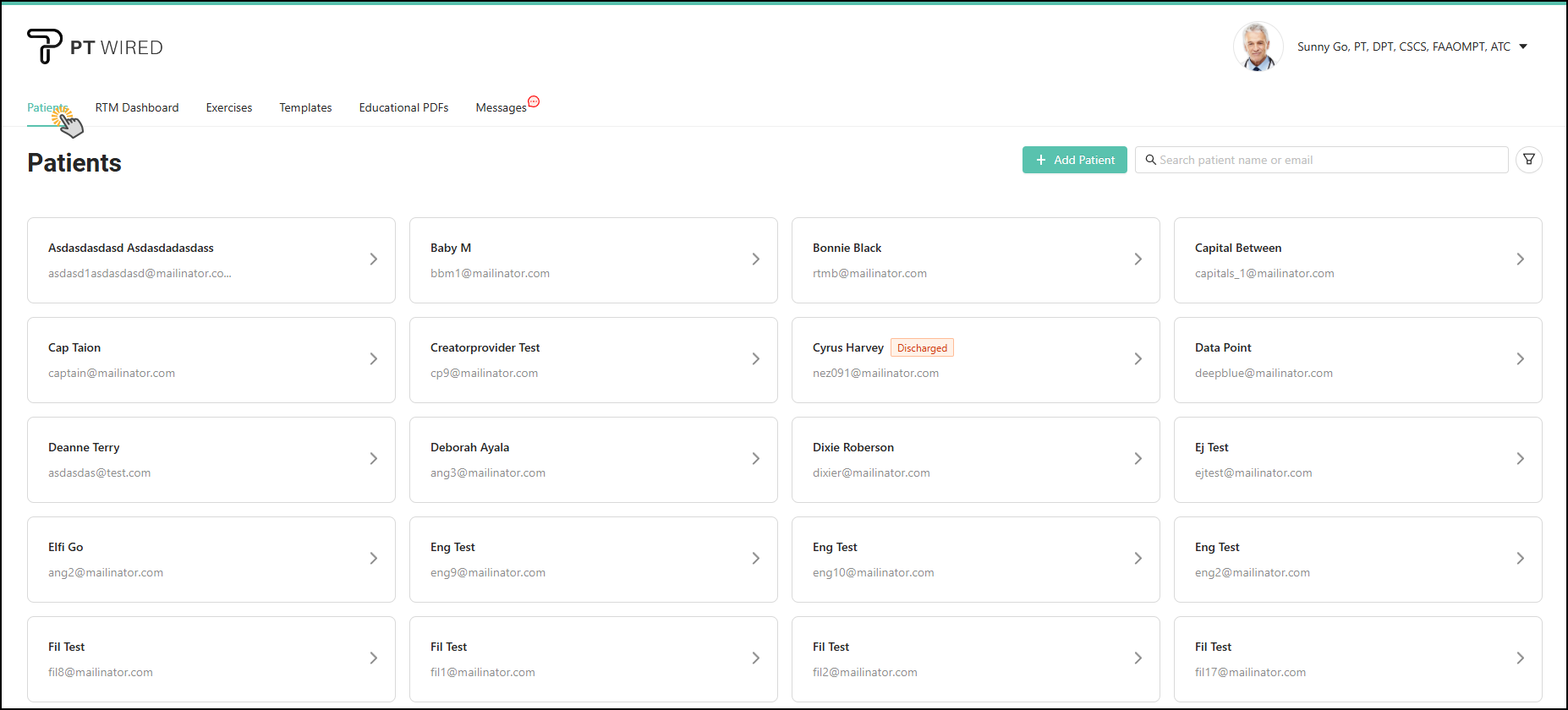 1.) Log in to the system as a provider and navigate to the "Patients" page.