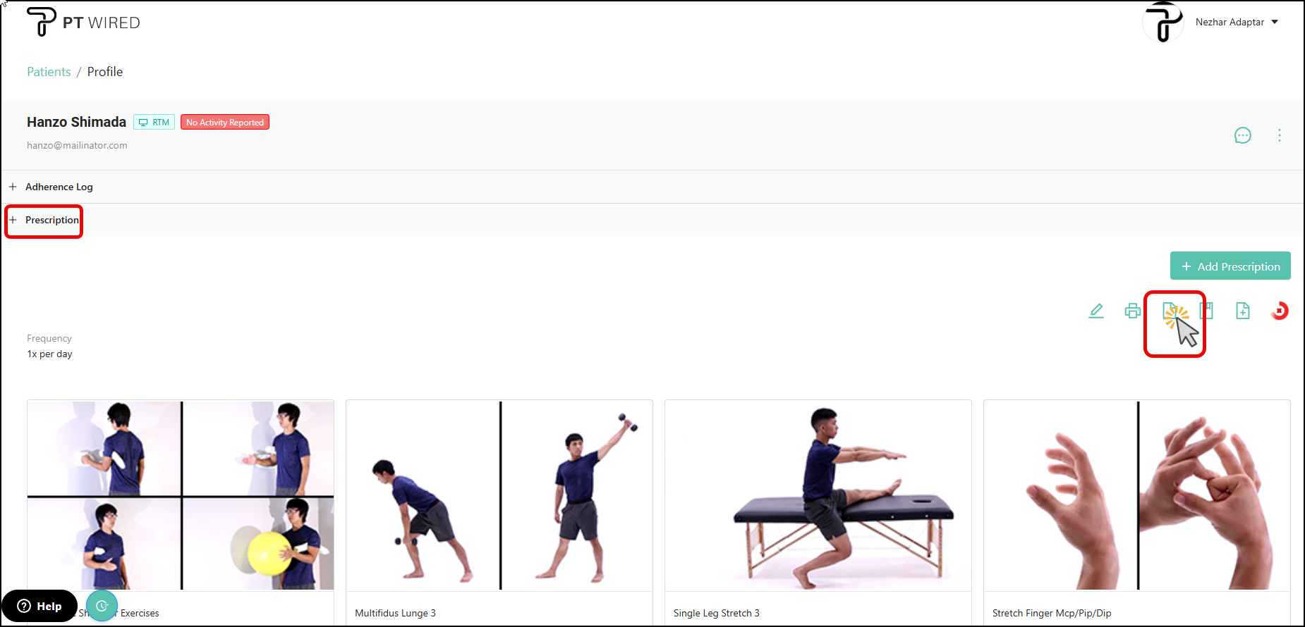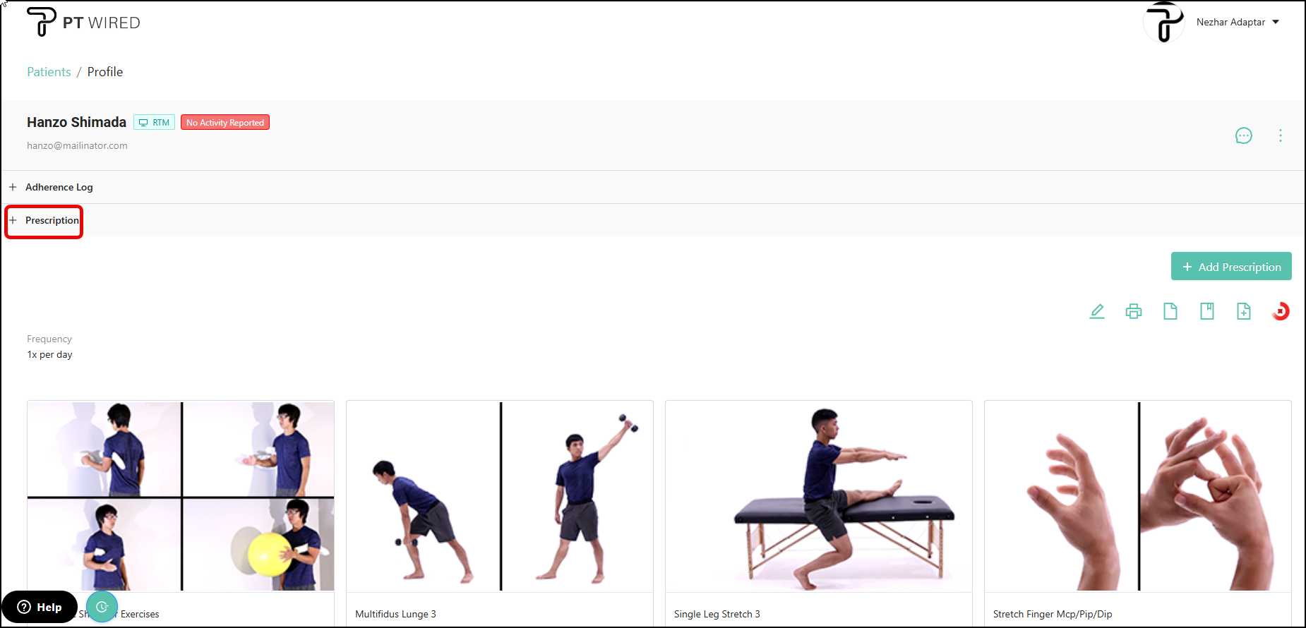 3.) Once you are in the patient's profile, scroll down to the "Prescription" section.