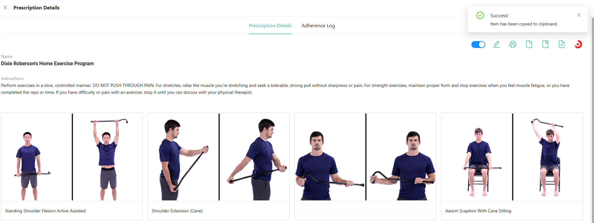 Providers can simply copy a text summary of a patient's exercise program from the provider application to their documentation notes, electronic medical records (EMRs,) etc.