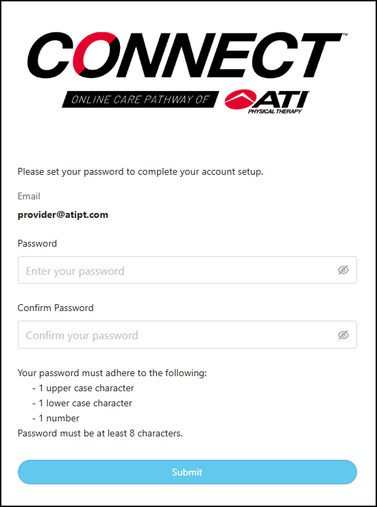 5.) Enter your new password, confirm it and click "Submit." You'll now be able to log in using your new log in credentials.