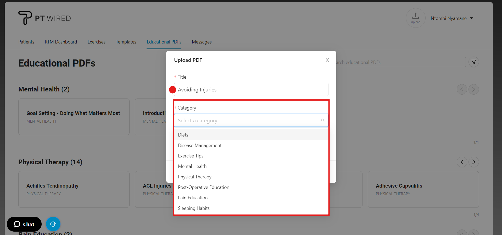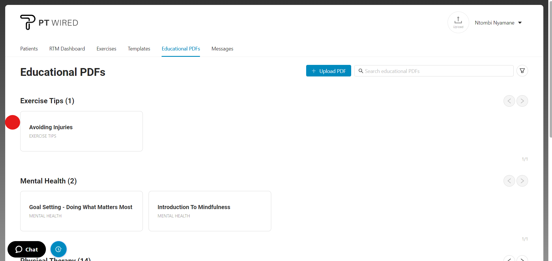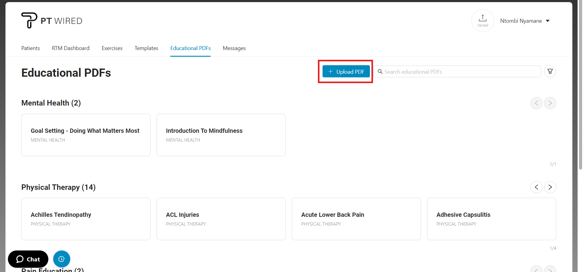 5. Your PDF will be saved under the relevant category. Please note that Uploaded PDFs are specific to the provider's library at the moment.