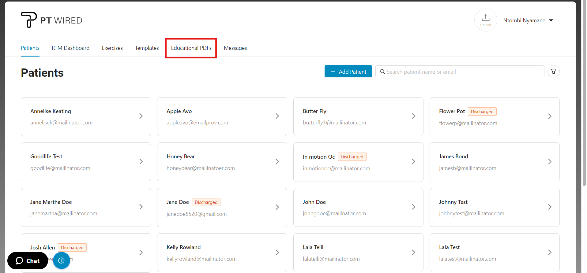 2. Once in the patient's profile, scroll down until you see the 'Assign Educational PDF' button.