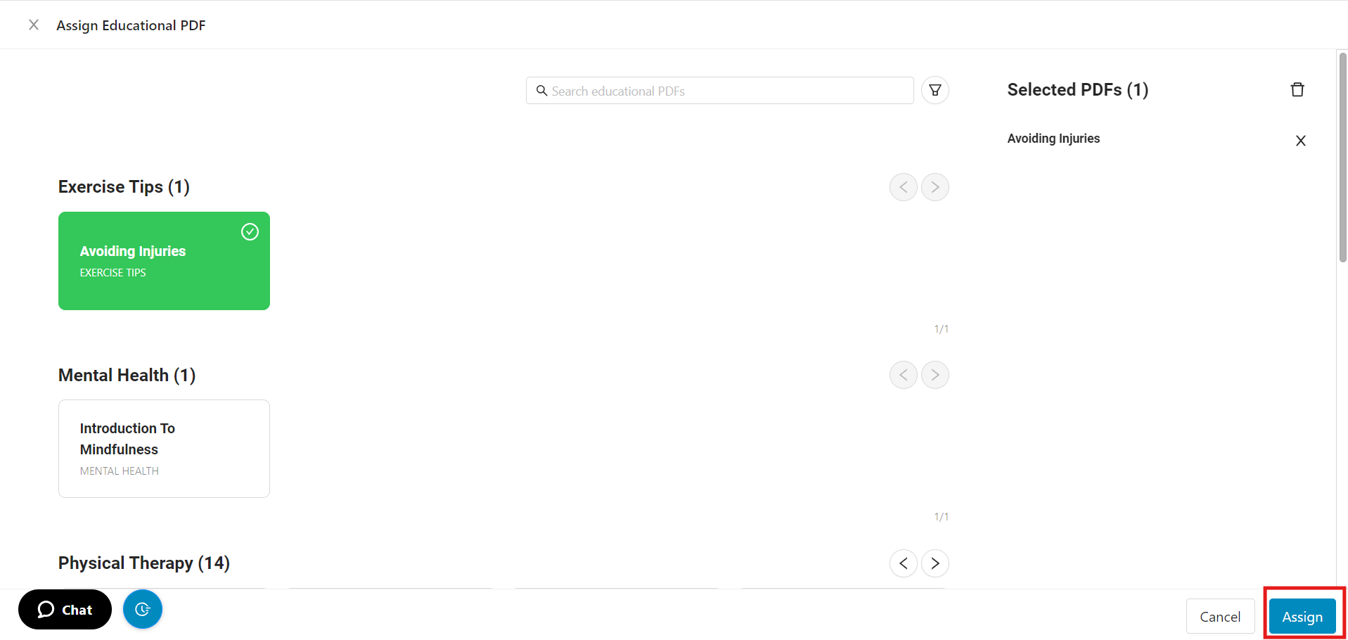 4. Once you've selected a PDF to assign, click on 'Assign.'