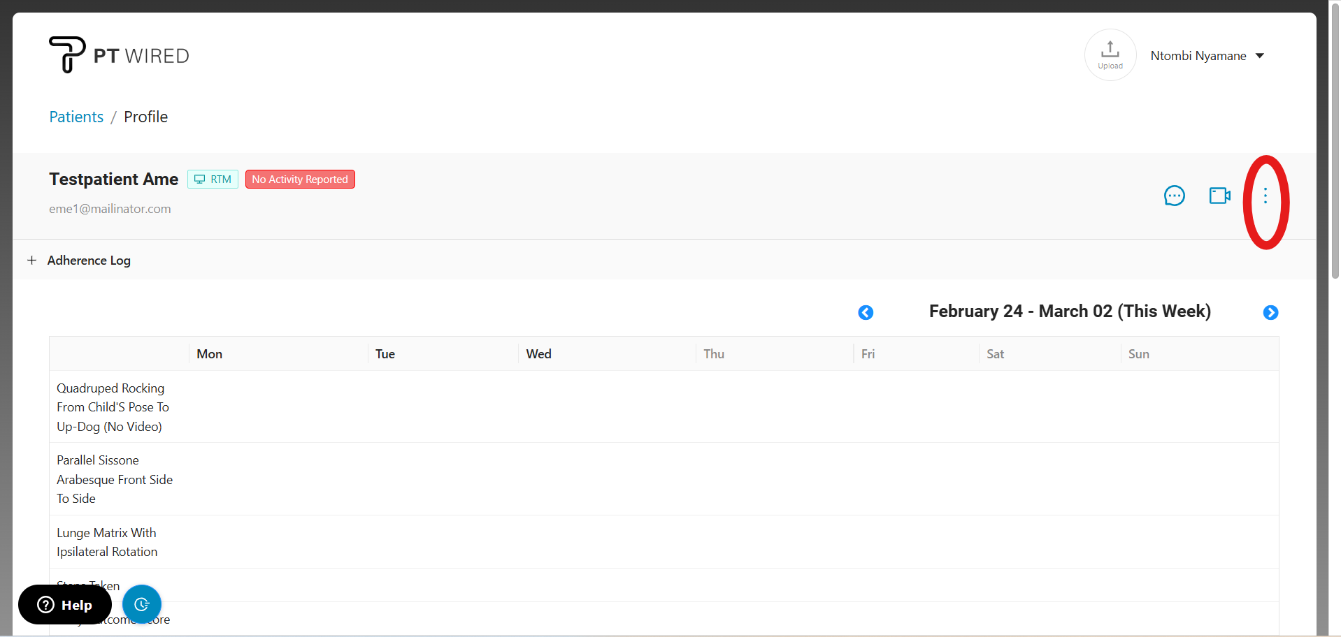 1. Click on the child account card from the patient's page and once in the profile, navigate to the three vertical dots on the right.