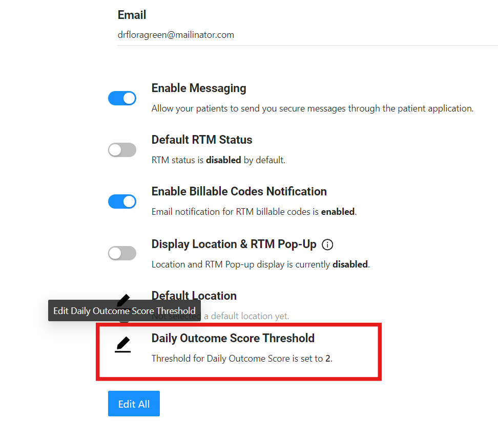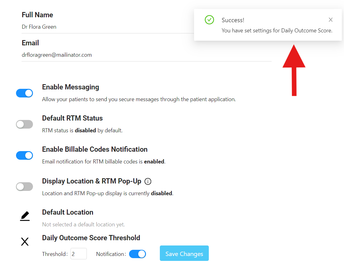 We've added a Daily Outcome Score threshold email notification option for low scores. Providers can customize the threshold and enable/disable notifications as desired.