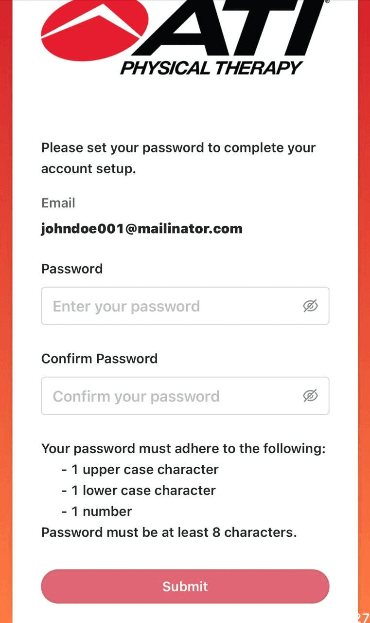 2.) You'll be directed to a page to set up a password. Once done, click "Submit."