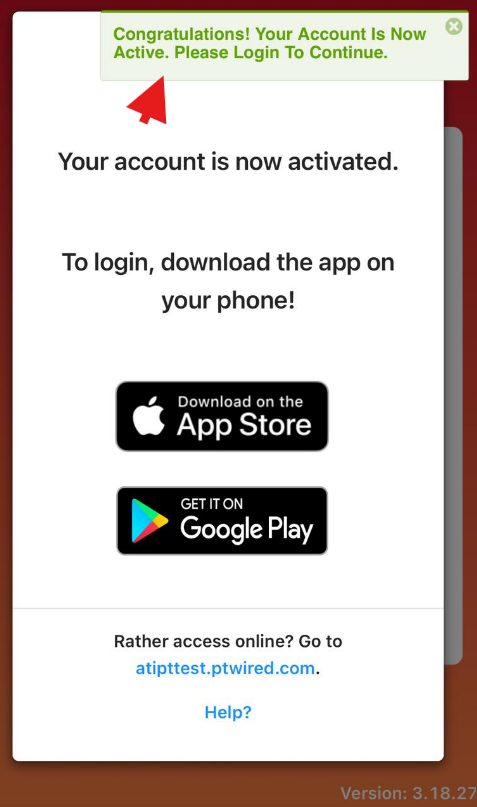 3.) Once you've clicked "Submit," a pop-up will appear advising that your account has been activated.