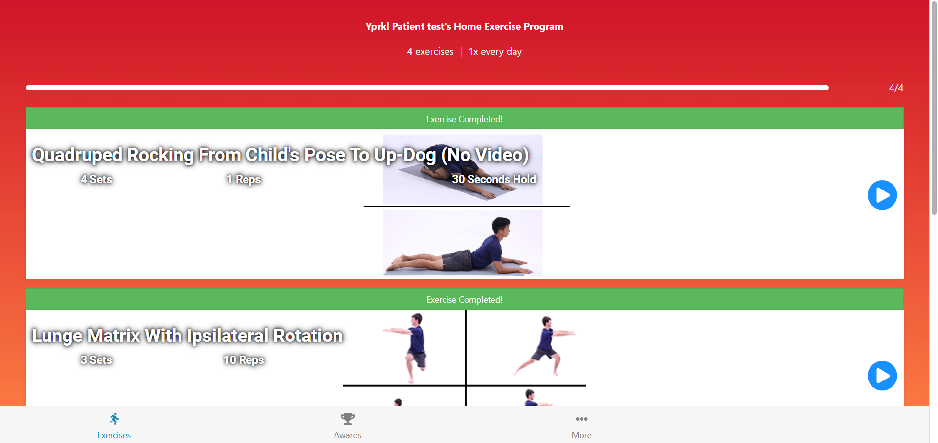 3.) You will then be redirected to the exercises page, where you can access the exercises for the chosen profile. You will have full access to this profile and can navigate around the app as desired.