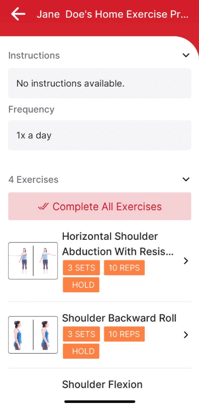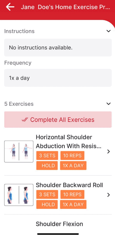 3.) The prescription instructions, parameters, frequency and HD videos will be displayed for each exercise assigned to this prescription.