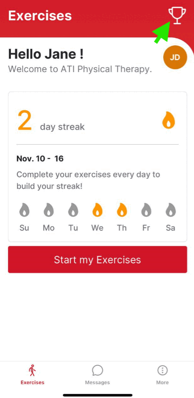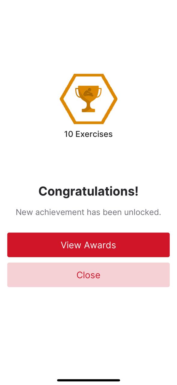 5.) Once you've completed your entire home exercise program you'll unlock an achievement - "First Routine," and your provider will be notified that you've completed all of your exercises.