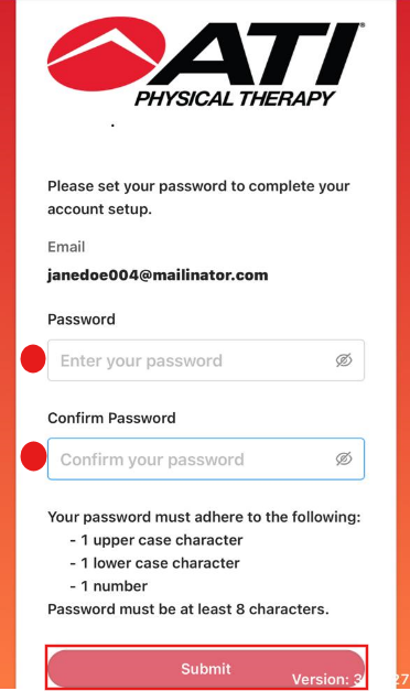 4.) Enter your new password, confirm it and click "Submit" at the bottom of the page. You'll now be able to log in using the new password.